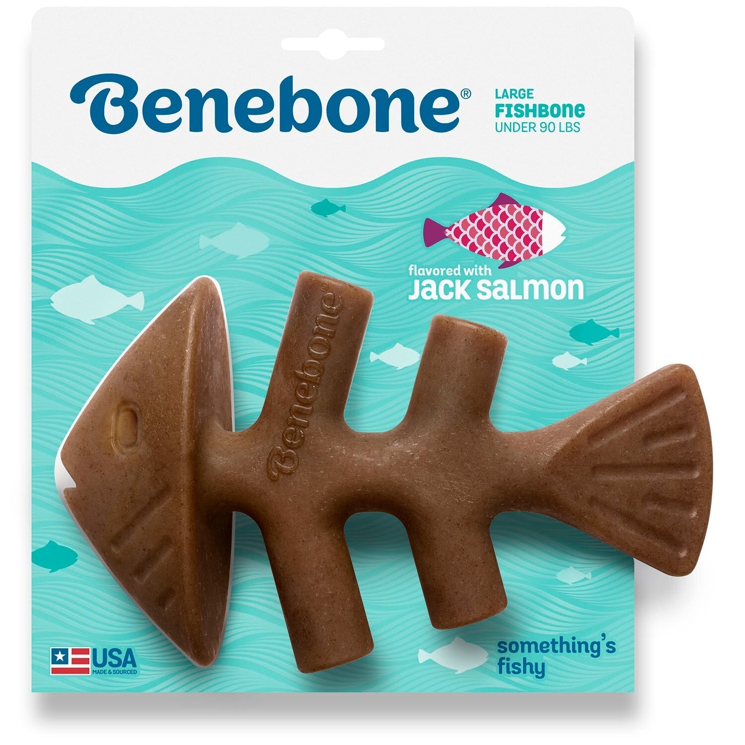 Benebone Fishbone Dog Chew Toy is inspired by the protein of the sea. This tasty toy is flavoured with real Jack Salmon, so your dog will go nuts for the smell of it. Made using super-strong nylon and real flavours.