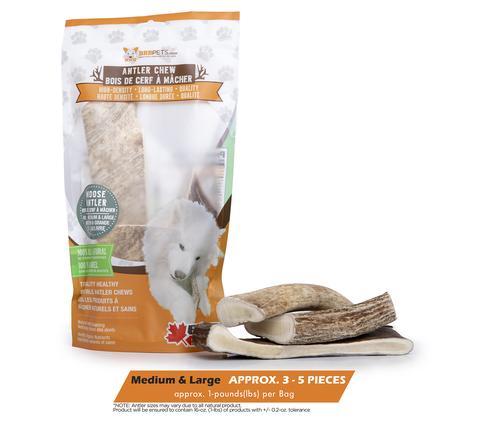 These moose antlers come in a variety of sizes and suitable for dogs weighing 10-85+ lbs, please see the specifications tab to choose the right size for your dog