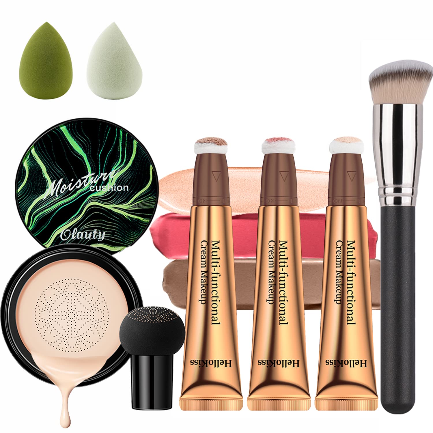 Contour Beauty Wand, Mushroom Head Air Cushion CC Cream Foundation, Liquid Face Concealer Contouring Highlighter Blusher Stick with Cushion Applicator, Blush Contour Bronzer Wand Set