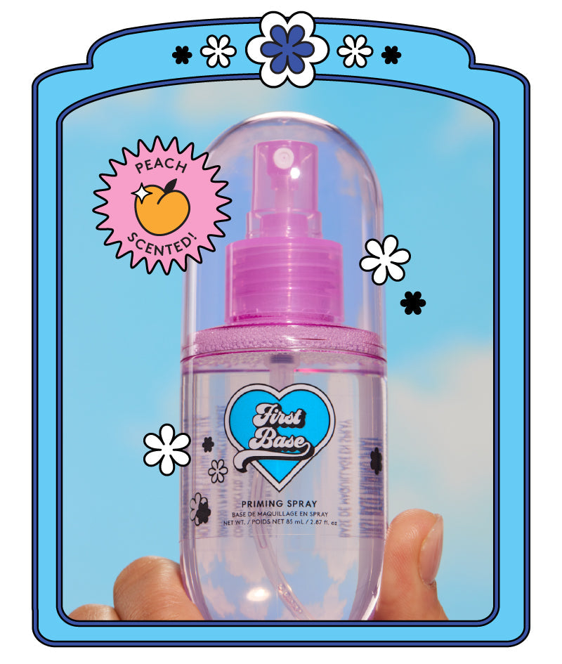 Batter up! The First Base Priming Spray is first step to your makeup routine. We all know the key to a flawless beat is skin prep + base. Start your routine off with First Base, a nourishing priming mist to get your skin prepped and ready for skincare and makeup. This peach scented mist is enhanced with skin-friendly ingredients for a makeup-ready base.
