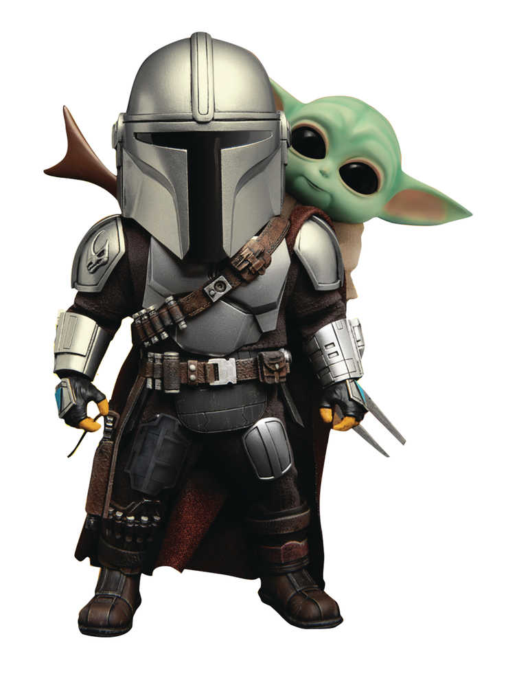 From Beast Kingdom. The Mandalorian, a new original Disney+ adventure from the world of Star Wars, tells the tales and escapades of the bounty hunter, known only as Mando! The EAA series of highly articulated, 6-inch action figures by Beast Kingdom is back with new Star Wars sets for fans of the Mandalorian! The kitted out bounty hunter is paired with a bevy of accessories fit to take on The Empire and its legions of Storm Troopers. Accompanying the Mandalorian is none other than the sensation The Child, the pint sized star full of cuteness! The Mandalorian set includes real fabric for the clothing, as well as a detailed recreation of the armor and weapons. The Childs bulging, adorable eyes are accurately recreated with two face sculpts for customization. This deluxe version include the now infamous levitating stroller. A perfect addition to have by Mando's side!