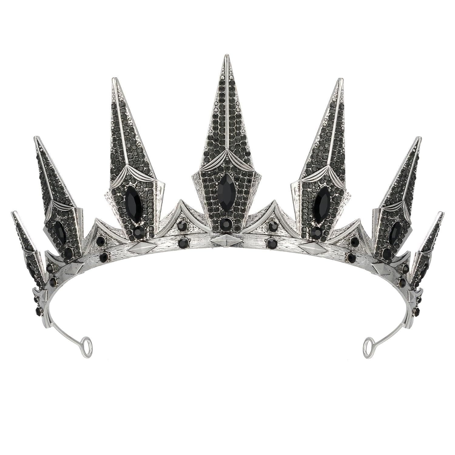 SWEETV Gothic Crowns for Women Black Tiara Queen Crown Witch Hair Accessories for Costume Halloween Prom Party, Silver
