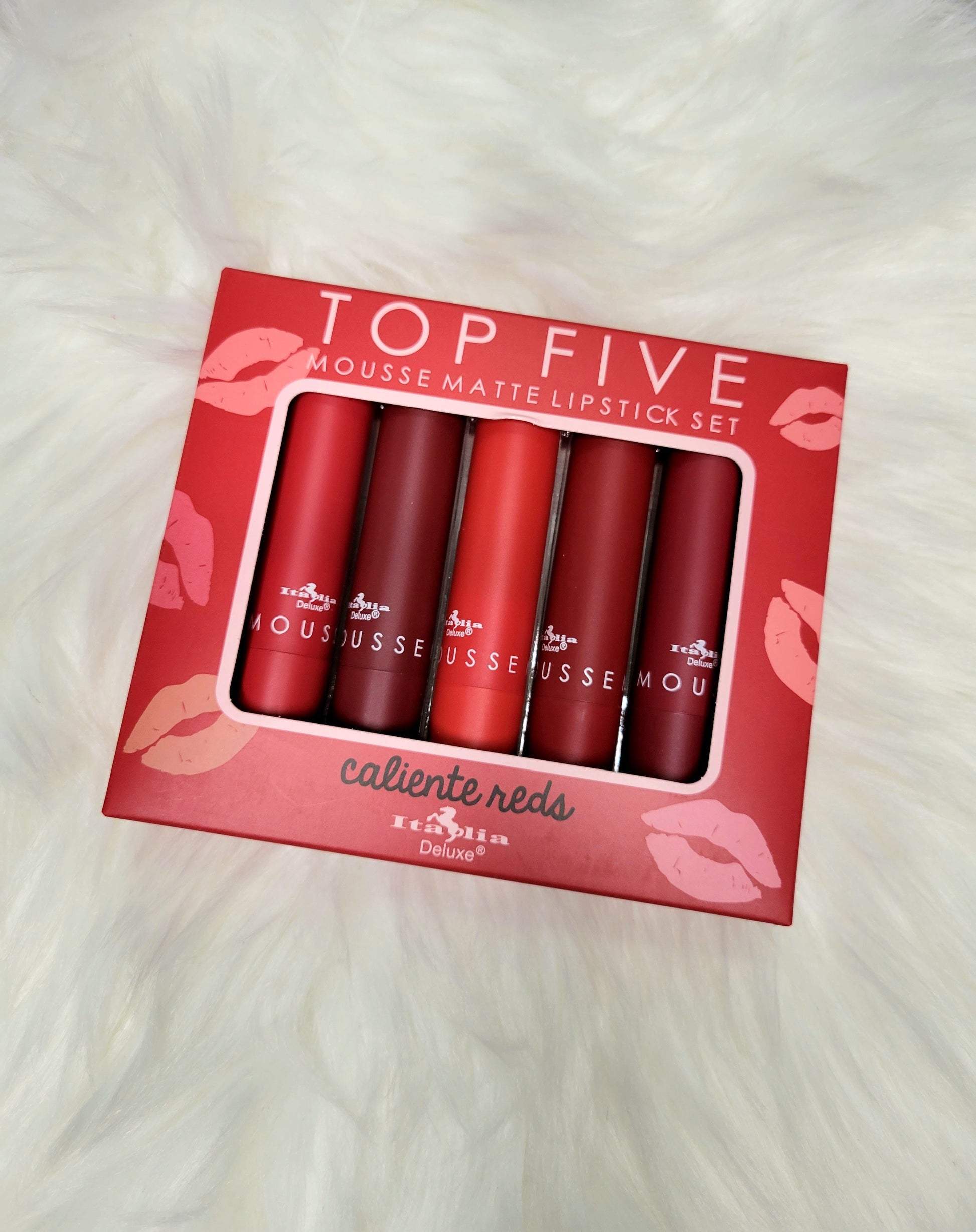 Top Five Mousse Matte Lipstick Set - Caliente red