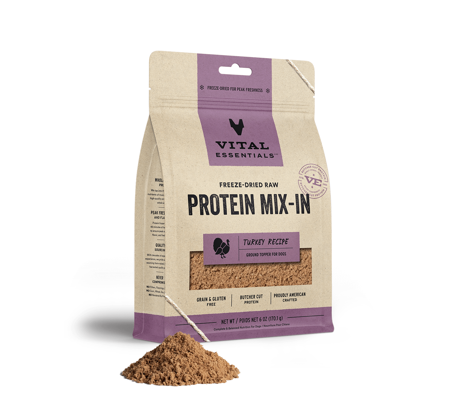 Vital Essentials Turkey Recipe Freeze-Dried Raw Protein Mix-In Ground Topper For Dogs
