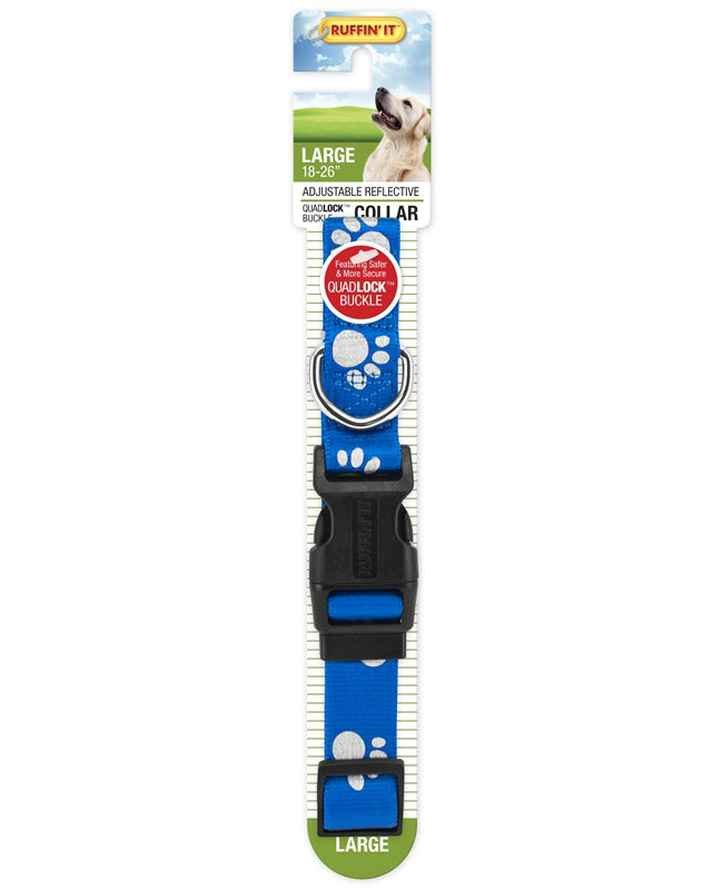 Westminster Pet 7N39243 Ruffin' It Adjustable Paw Print Large Reflective Dog Collar, Nylon, Assorted Color