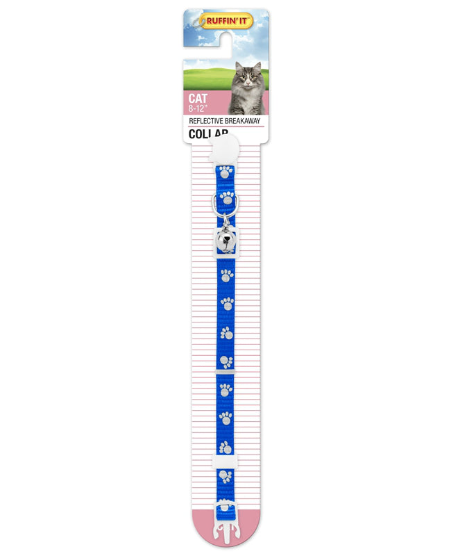 Westminster Pet 7N39249 Ruffin' It Adjustable Breakaway Cat Collar Reflective Paw Print And Bell, Nylon, Assorted Color, 8 - 12"
